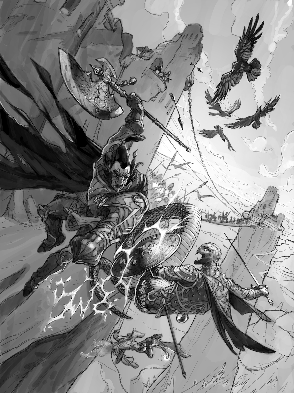 A client reached out to me with a special request: to make a painting of a critical moment in their custom D&D campaign. This battle was the culmination of dozens of hours of character building and narrative.